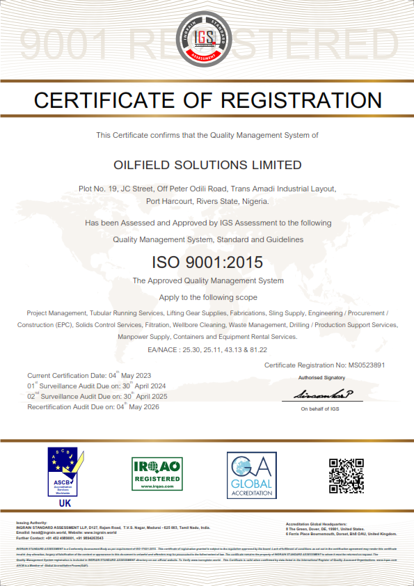 QMS (ISO 9001:2015) First Surveillance Audit with scope “Facilities Maintenance and Support (Valve Repairs and Calibrations, Belt Alignment and Tensioning Services, Instrumentation & Control Services, Lifting Inspection Services, Hose Management, Tank Cleaning and Calibration), Material Services (Material Procurement & Supply Chain Management); and Heat Exchanger Services”
